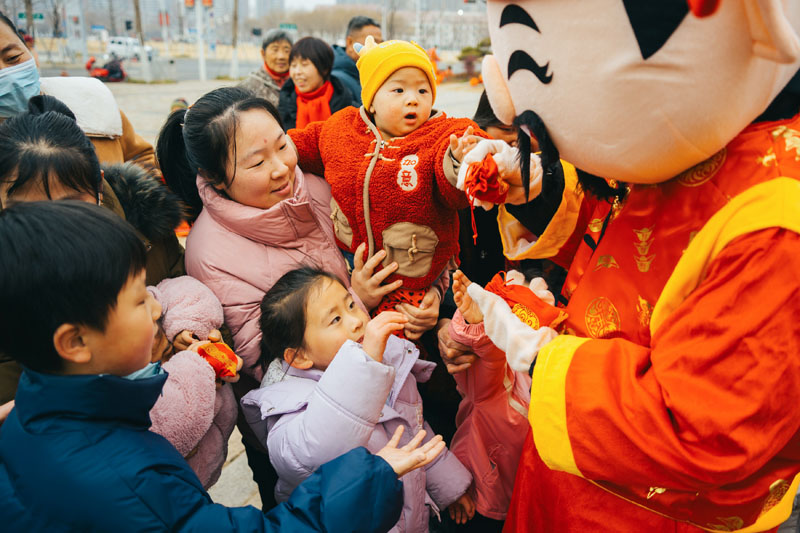 除了精彩絕倫的舞龍舞獅表演,活動現(xiàn)場還邀請了“財神爺”巡游。“財神爺”一路走街串巷,為街區(qū)里的商戶送去新春的美好祝福,祝愿他們新的一年生意紅火、財源廣進(jìn)。同時,“財神爺”還向市民和游客發(fā)放福袋,大家紛紛上前領(lǐng)取,希望沾沾財氣,收獲滿滿的好運,現(xiàn)場一片歡樂祥和的景象。